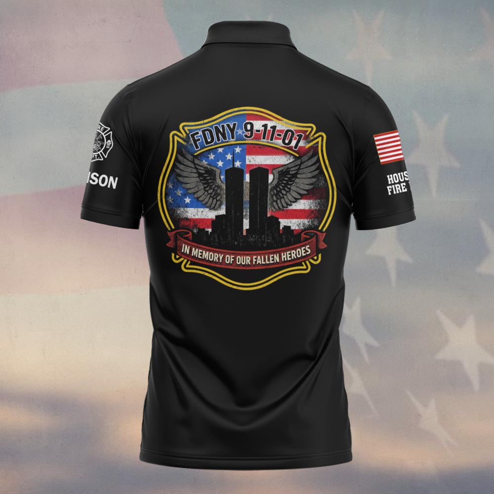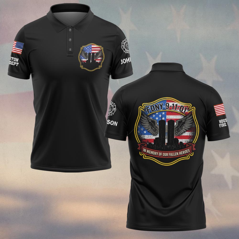 In summary, the FDNY 9/11 Fallen Heroes Tribute Polo Shirt is not just a clothing item; it is a powerful statement of honor and respect. With the ability to customize it to your liking, this polo stands as a personal tribute to the bravery of first responders. Get yours today and carry forward the legacy of those who served with courage. Celebrate their sacrifices, honor their memories, and wear this tribute with pride as you remind others of the heroism that defines the spirit of America.