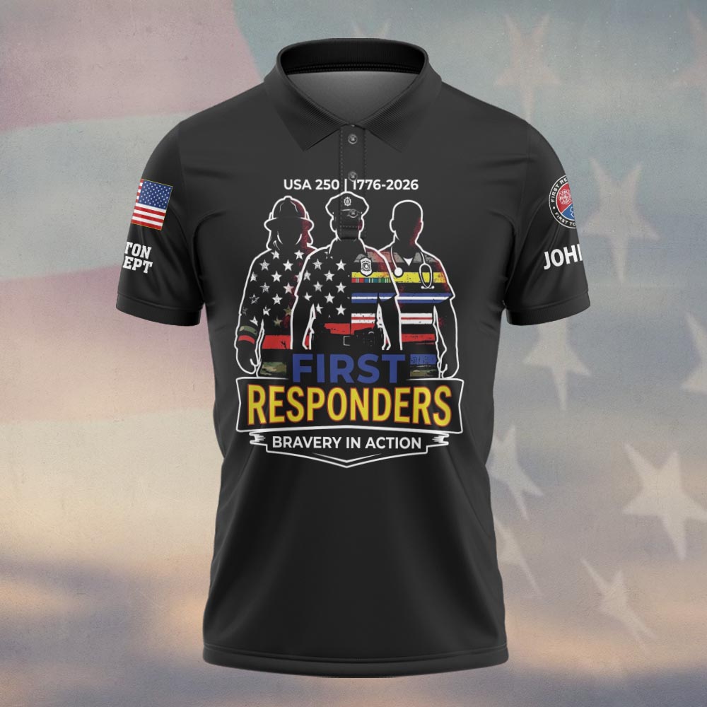 Celebrate American Courage with the USA 250 Bravery In Action First Responder Custom Polo Shirt